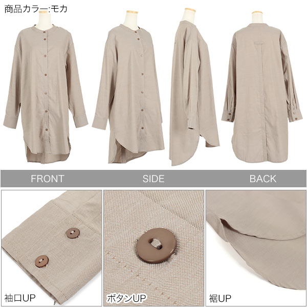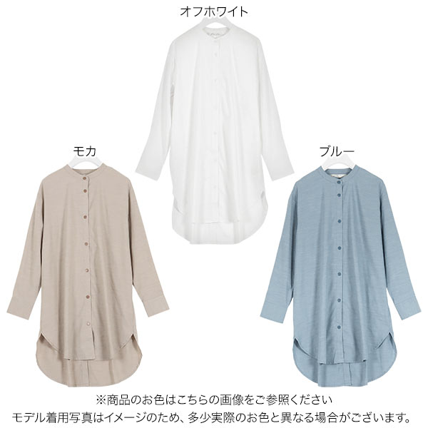 【予約販売:20営業日にて発送予定】シャツ スタンドカラー 長袖 ロールアップ カラーボタン テールカット トップス レディース 秋【メール便送料無料】