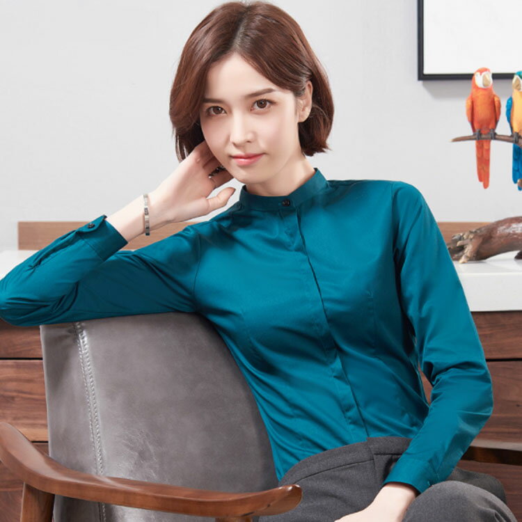 全6色×8サイズ!スタンドカラー シャツ ブラウス レディース トップス ワイシャツ フォーマルシャツ 長袖 立ち襟 大きサイズ ビジネス フォーマル 面接 就職 通勤 仕事着 シンプル 無地 春 秋送料無料