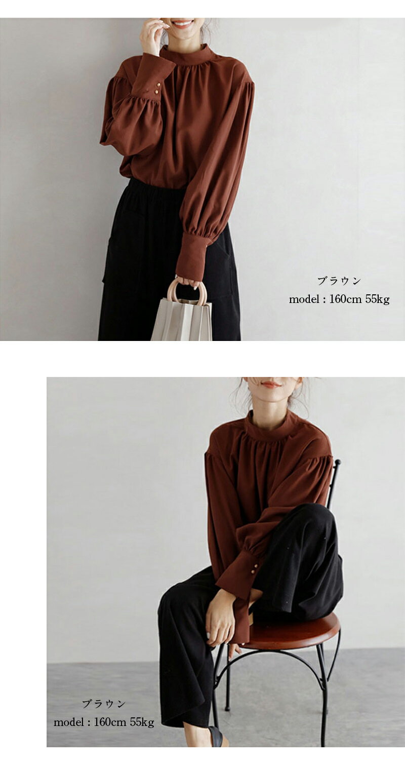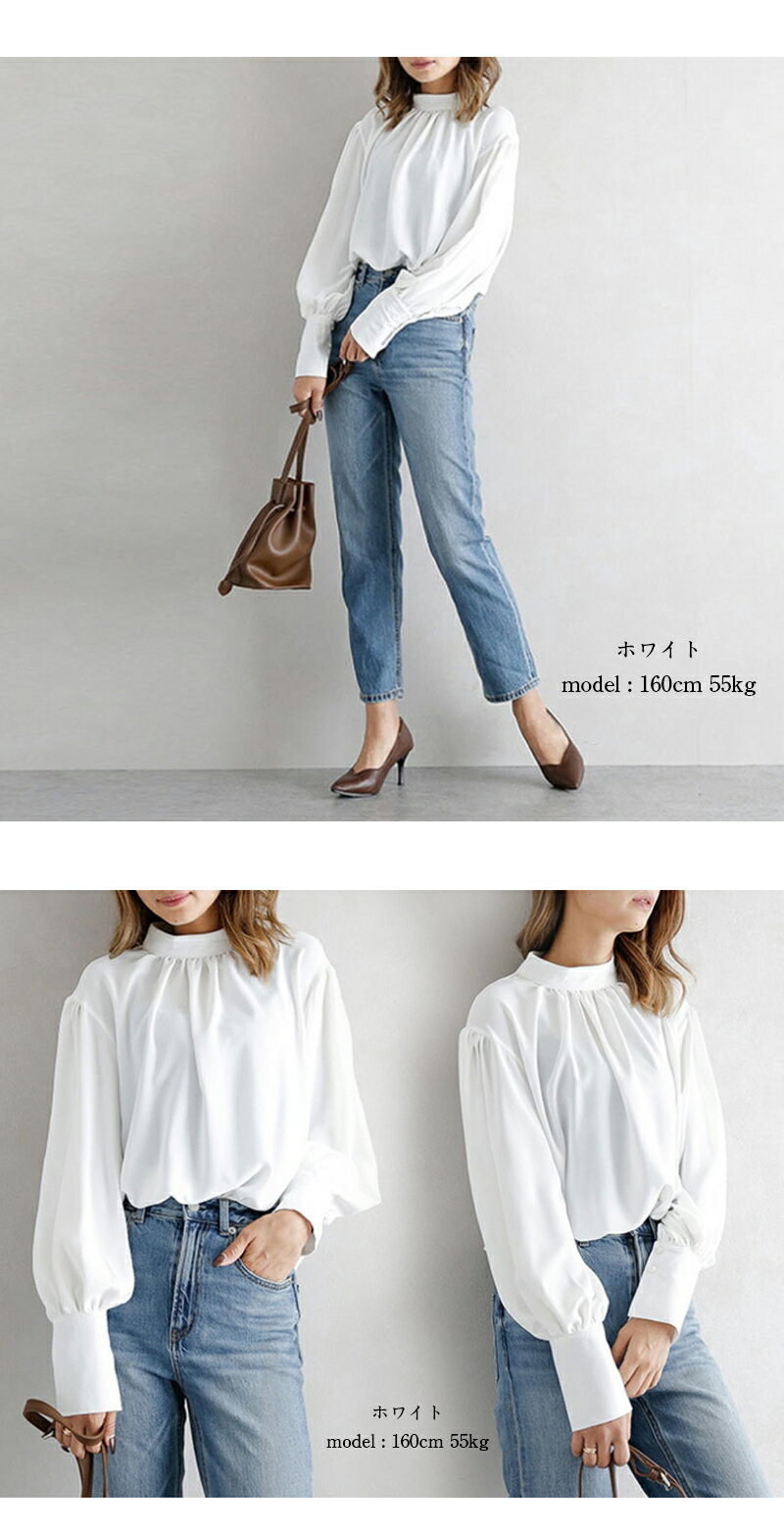 【GW限定先着20名半額1980円】バルーンブラウス ブラウス レディース バルーンスリーブ プルオーバーブラウス パフスリーブ 長袖 UVカット おしゃれ 無地 スタンドカラーブラウス スタンドカラー ボリューム袖 きれいめ トップス 春 夏 ハイネック オフィス とろみ